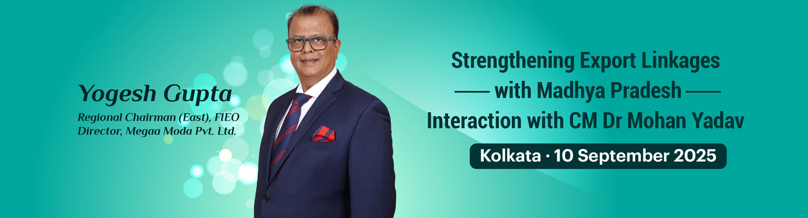 One to one meeting with Hon’ble Chief Minister of Madhya Pradesh, Dr Mohan Yadav, at his investment conclave in Kolkata. Yogesh Gupta, Regional Chairman (East), FIEO and Managing Director, Megaa Moda Pvt. Ltd., discussed the strong scope for exports from Madhya Pradesh and probable investments to build competitive, compliant, and reliable supply from the state.